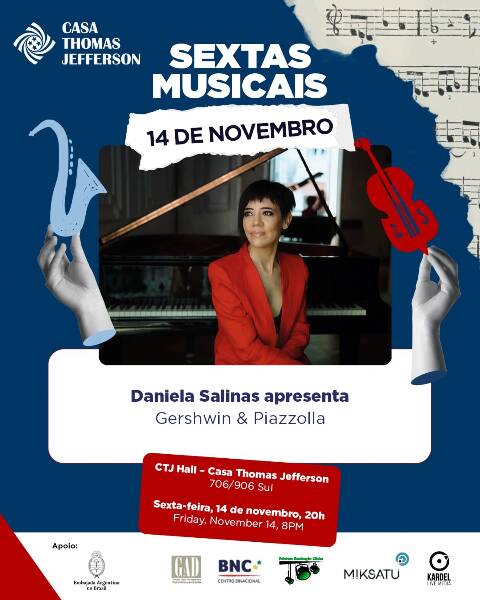 O quê: Sextas Musicais - concerto “Gershwin & Piazzolla” da pianista Daniela Salinas